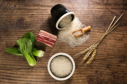 用料:美国大米-中短粒米、青菜、咸肉、猪油、盐、味精