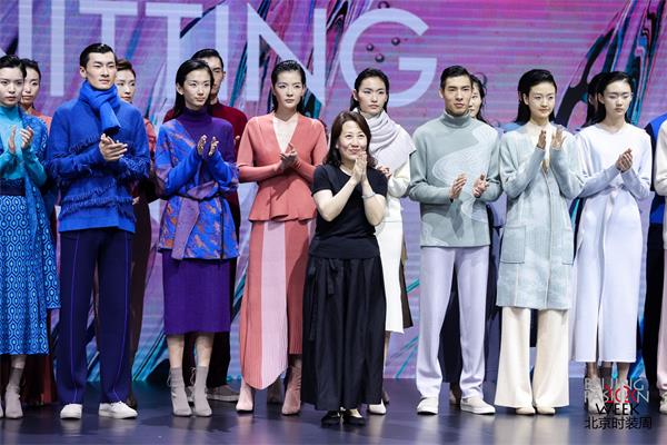 中国十佳时装设计师、北京服装学院教授、雪莲--北服中国针织服装设计研发中心主任郭瑞萍(中)