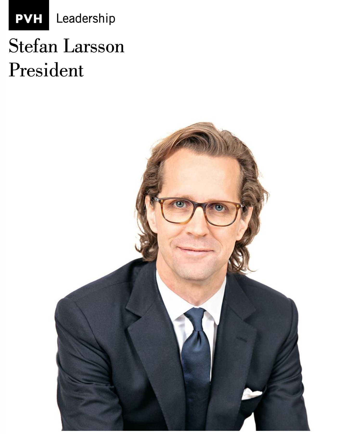 Stefan Larsson 于2019年6月加入 PVH 集团出任总裁一职,负责集团所有地区和品牌的业务。“Stefan Larsson 的全球化视野和愿景,能够应对当前不断变化的市场形势与数字化需求,他将专注于持续推动集团业务增长,实施集团的战略优先任务”,PVH 集团官网指出。
