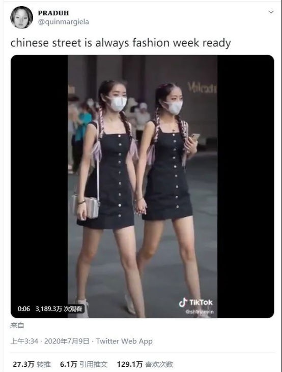 ▲成都的街拍一骑绝尘,排得上全国前三。它曾一度冲出外网,震惊过Tiktok,引得Twitter3100万网友竞相围观,帖子标题就是“中国街头随时在上演时装秀”。图出自Twitter用户@PRADUH。