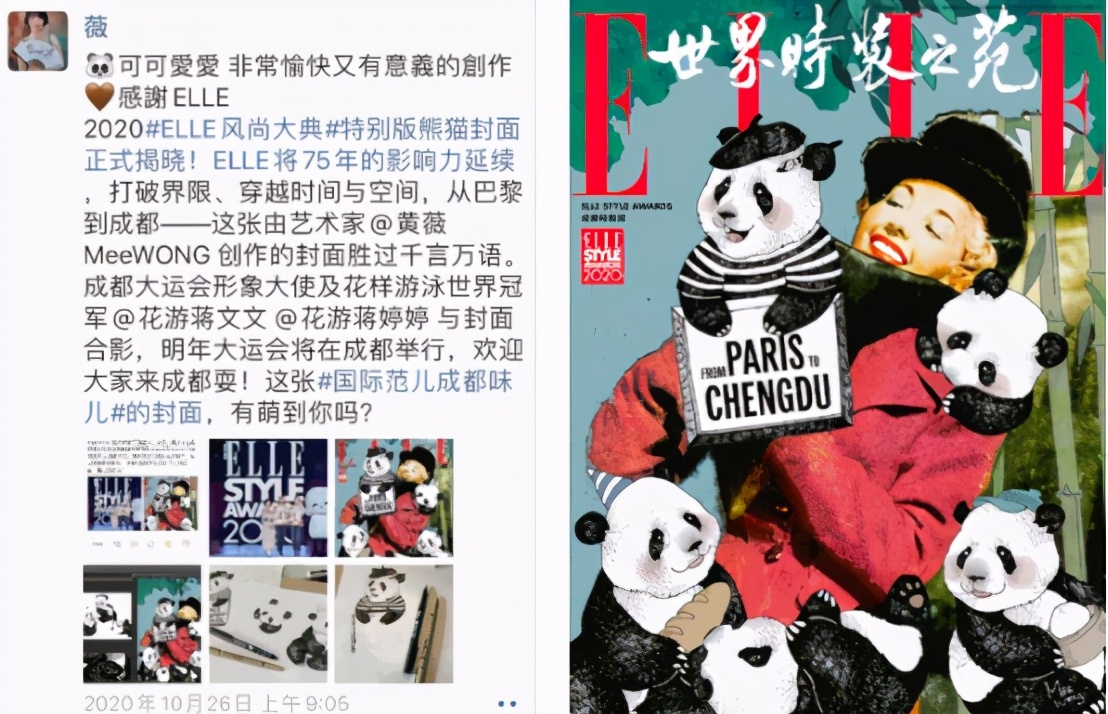 ▲这次黄薇为ELLE风尚大典创作的2020特别版封面,这几只熊猫真的是太可爱了。