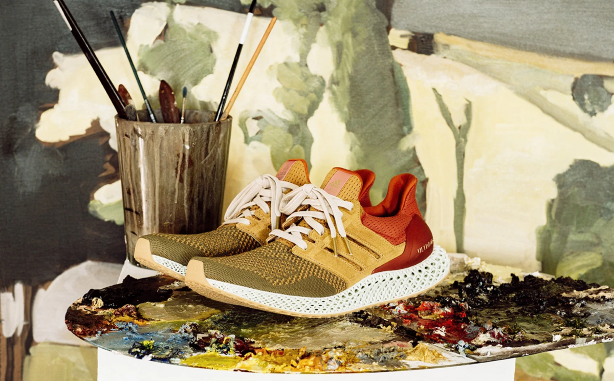 这款鞋的配色以达芬奇(Leonardo da Vinci)于1507年创作的《蒙娜丽莎》(Mona Lisa)为灵感,采用 Primeknit 编织鞋面设计,其中鞋头采用橄榄绿色、仿麂皮质的鞋腰采用小麦色、鞋后跟采用棕红色,搭配3D打印设计的 4D Technology 中底。