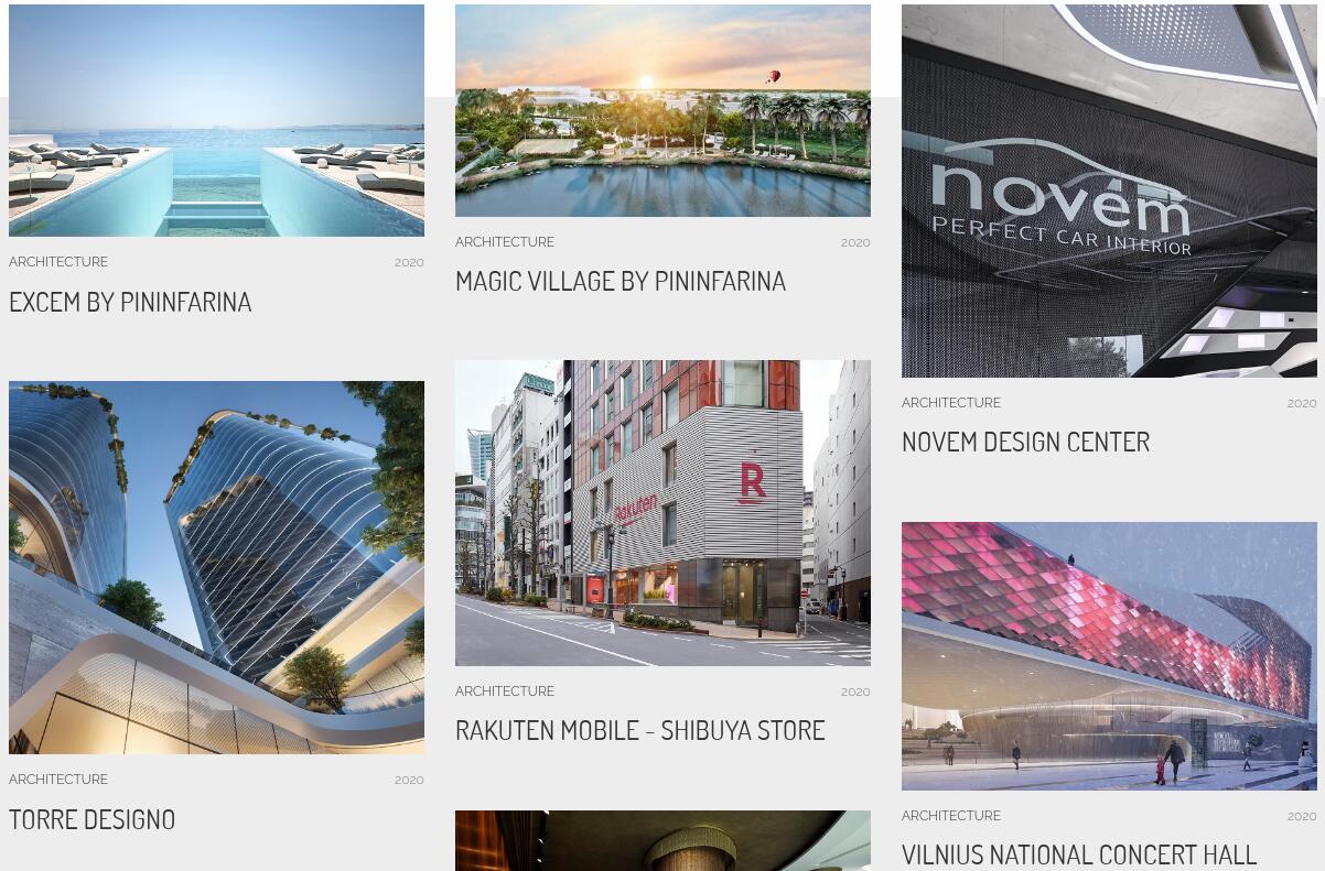 意大利豪华跑车生产商法拉利(Ferrari)的御用设计公司 Pininfarina 在室内设计和建筑设计领域拥有一系列作品,仅在2020年就启动了6项,包括: