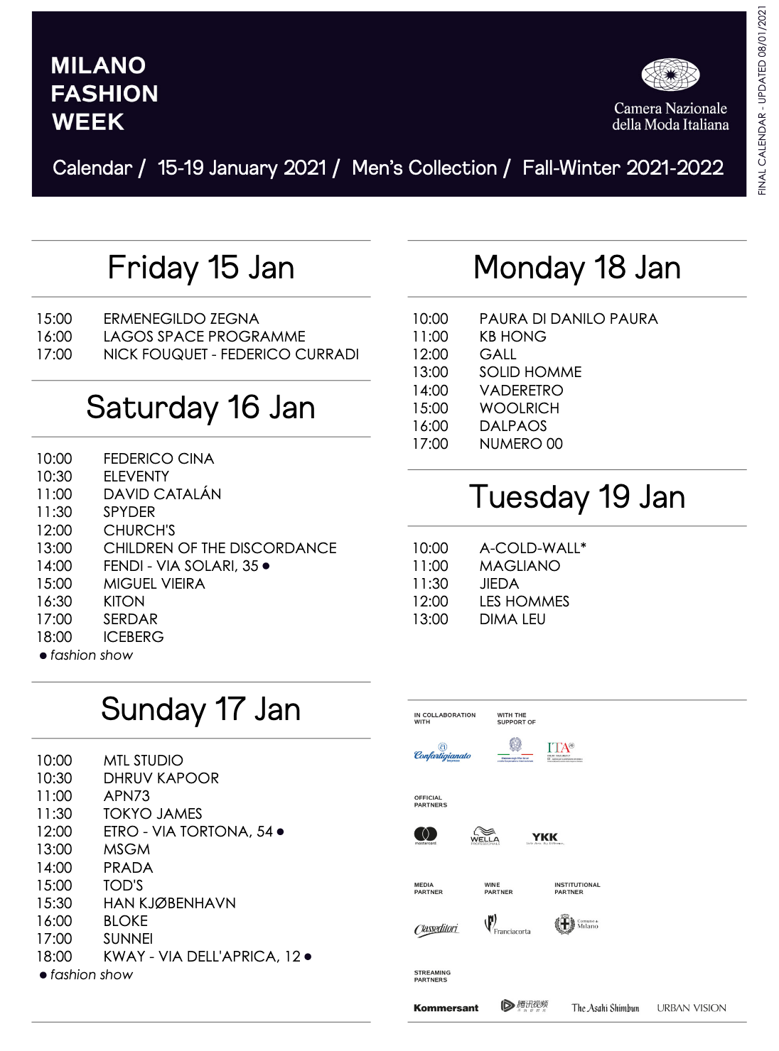 附:米兰秋冬男装周时间安排表