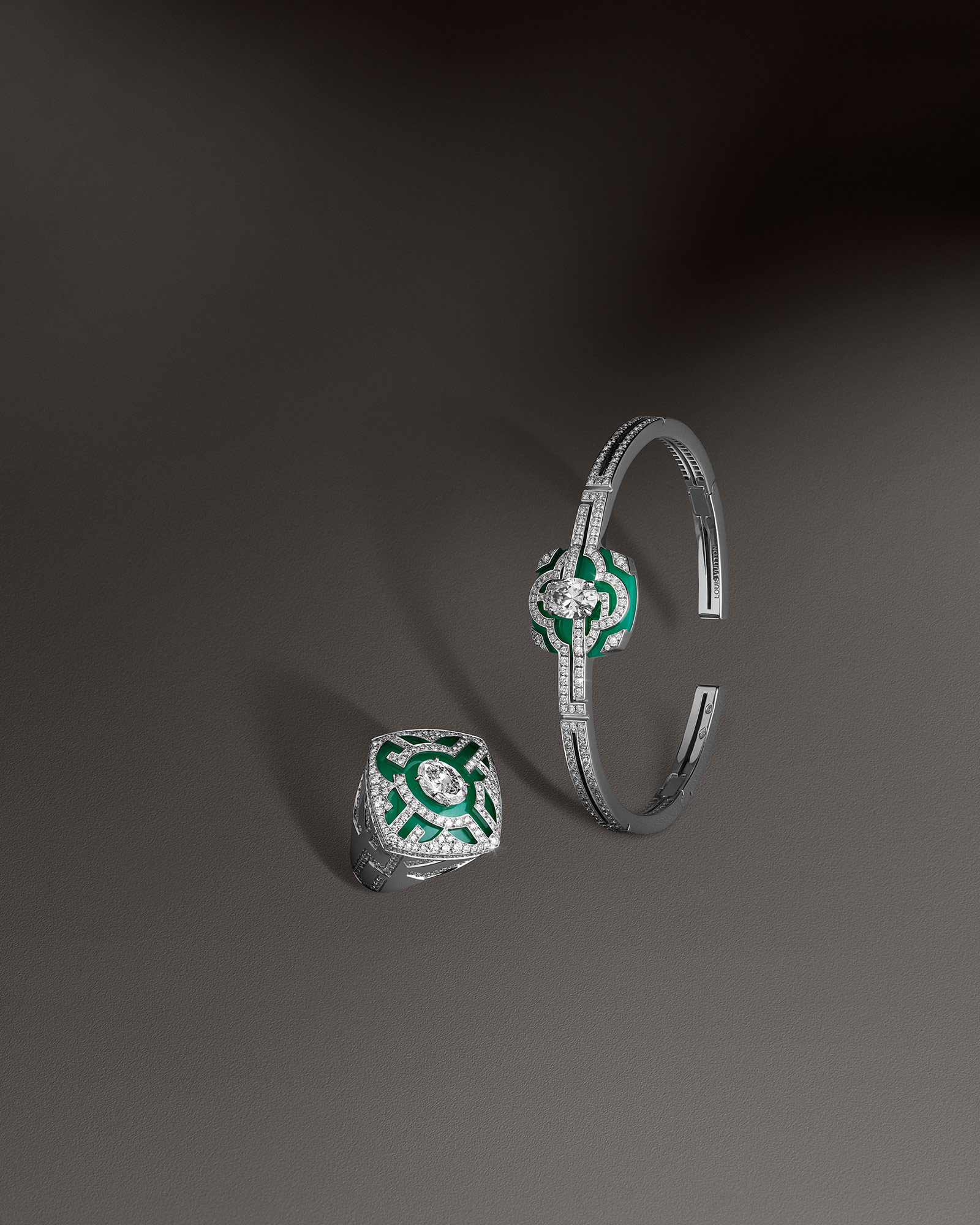 第二阶段由品牌内部团队负责高级珠宝的设计,以2013年推出的艺术装饰风格 Art Deco高级珠宝系列 Acte V (下图)为标志。该系列以路易威登家族第三代家族传人 Gaston-Louis Vuitton 设计的”V”字母(罗马数字5)为灵感,同时寓意第五个高级珠宝系列。